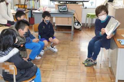 読み聞かせボランティアの語りかけに、子どもたちも本の世界に引き込まれていました。