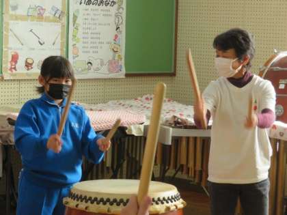地域講師から学ぶクラブ活動(卓球クラブ・和太鼓クラブ・木工クラブ)の様子です。