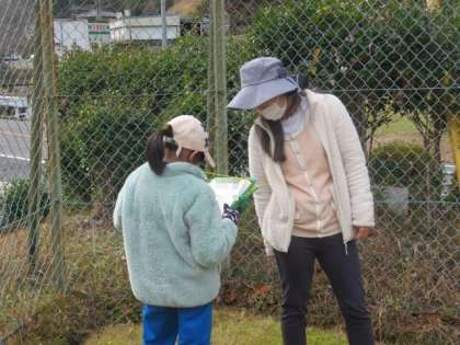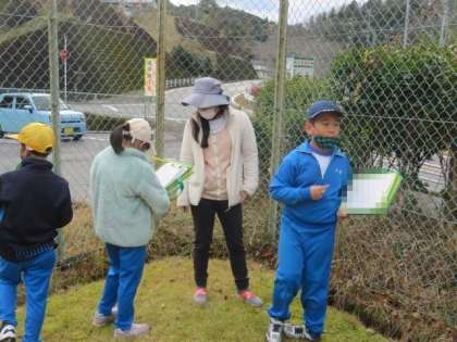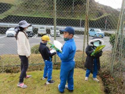 今日は「冬見つけをしよう」の学習です。寒さに負けず校庭に出て、冬らしさを感じられるものを見つけて、ワークシートに記入していました。それぞれが見つけたものについて、友達と対話しながら、楽しそうに活動していました。