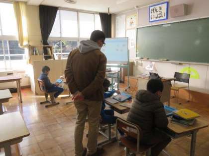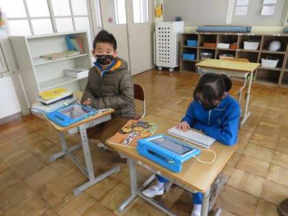 学習用タブレットを活用して、本の面白さやおすすめの理由を伝え合っていました。