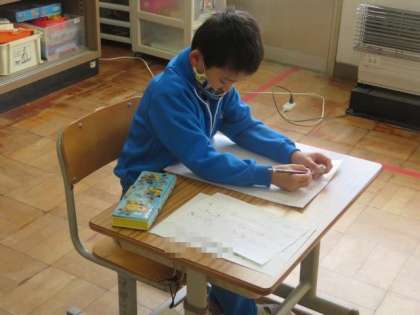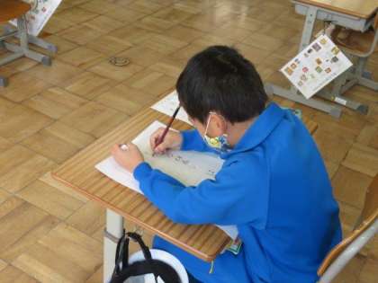 お手本をよく見て、一つ一つの文字を丁寧に書いていました。