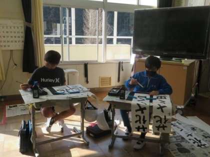 3年生からは毛筆に取り組んでいます。集中して黙々と書いていました。