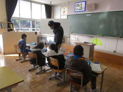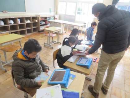 学習用タブレットを活用して、自分の考えを仲間に発信します。ICT機器を活用した、対話的な学習に取り組んでいます。