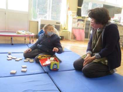 1/13 ひまわり学級 公開日 2023/01/13 更新日 2023/01/13 各学年から ひまわり学級 自立活動の授業の様子です。 ひらがなが表示された積み木を使って学習していました。先生とたくさん対話しながら、積み木を選び取ったり、分類したりしていました。対話的な学びによる、コミュニケーション能力の高まりが感じられます。