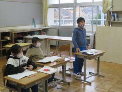 1/24 2年生 公開日 2023/01/24 更新日 2023/01/24 各学年から 2年生 国語科の授業の様子です。 今日は「声に出してみよう」の学習をしました。「雨」と「飴」など、同じ「あめ」でも、言葉によって音が変わることを学習しました。実際に声に出して言葉を読みながら、気づいたことを伝え合い、みんなで理解を深めることができました。