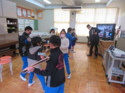 2/1 3・4年生 公開日 2023/02/01 更新日 2023/02/01 各学年から 3・4年生 音楽科の授業の様子です。 今回も、足助研究グループ校と合同で、オンライン授業を行いました。今日は、愛知県東栄町に伝わる伝統芸能「花祭」について学習しました。みんなで「花の舞」に挑戦しながら、地域の伝統芸能に対する理解を深めることができました。ICT機器を活用した、地域のつながりを生かした取組を今後も継続していきたいと思います。