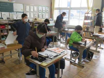 2/2 5・6年生 公開日 2023/02/02 更新日 2023/02/02 各学年から 5・6年生 書写の授業の様子です。 今日も、6年生は「旅立ちの時」、5年生は「あこがれ」の練習をしました。今回も、地域講師の方が、一人一人に丁寧にアドバイスをしてくださいました。最終的に、どんな作品が書きあがるか楽しみです。