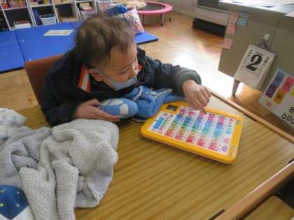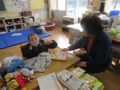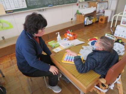2/2 ひまわり学級 公開日 2023/02/02 更新日 2023/02/02 各学年から ひまわり学級 国語科の授業の様子です。 授業の初めに、昨日の出来事を「言葉カード」を使ったり、文字を指さしたりしながら、先生に一生懸命伝えていました。ひらがなやカタカナもたくさん覚え、自分の思いをいろいろな方法で伝えることができるようになっています。