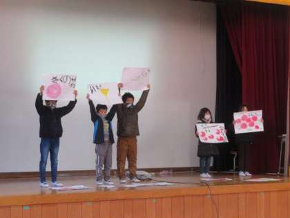 「季節の発見」をテーマに、1年間の生活科の取組を発表しました。生活科で学んだことを、季節ごとにまとめ、全員で堂々と発表することができました。この1年間で学んだことを、来年度以降の活動に生かしていってほしいです。