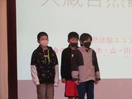 2/4 生活・総合学習発表会3 公開日 2023/02/04 更新日 2023/02/04 学校行事 3・4年生の発表の様子です。 「大蔵自然観察の森」と題して、1年間の総合的な学習の時間の取組について発表しました。大蔵の自然について、興味・関心をもって学ぶことができた様子が伝わってきました。この1年間で学んだことを、これからの学習や生活に生かしていってほしいです。