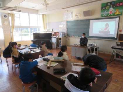 今日は、鑑賞の学習でした。「フルート」と「クラリネット」の音色や特徴について、気づいたことや感じたことを伝え合っていました。音や演奏方法の違いなど、さまざまな気づきを伝え合っていました。対話を通して学びを深めている姿が見られました。