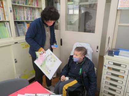 2/9 ひまわり学級 公開日 2023/02/09 更新日 2023/02/09 各学年から ひまわり学級 朝の挨拶の様子です。 今日も、職員室に来て「朝の挨拶」「健康観察の結果報告」「昨日の出来事の報告」をしてくれました。昨日は、病院の検診を受けてきたため、学校をお休みしていましたが、そのときの様子を詳しく話してくれました。いろいろな出来事や自分の思いを上手に伝えることができるようになってきました。