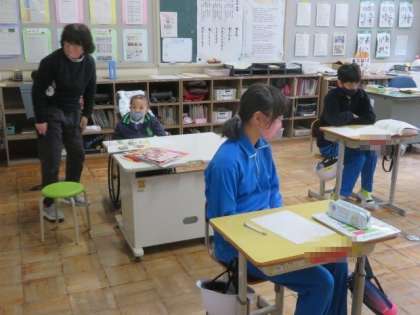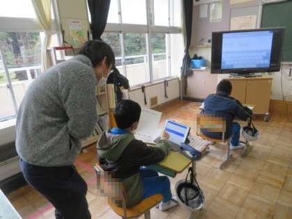 2/13 5・6年生 ひまわり学級 公開日 2023/02/13 更新日 2023/02/13 各学年から 5・6年生 ひまわり学級 外国語科の授業の様子です。 今日は「My Best Memory」の学習でした。小学校生活の思い出について、英語でどのように表現するのかを学びました。学習用タブレットを活用しながら、一人一人が英語表現を確認し、それぞれの思い出をまとめていました。思い出を振り返りながら、英語表現についての理解を深めることができました。