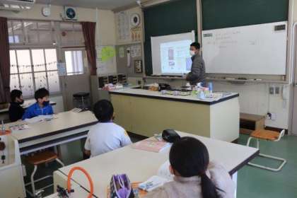 3・4年生の理科の授業の様子です。 水の温まり方について実験を行い、水蒸気の出方などを観察しました。