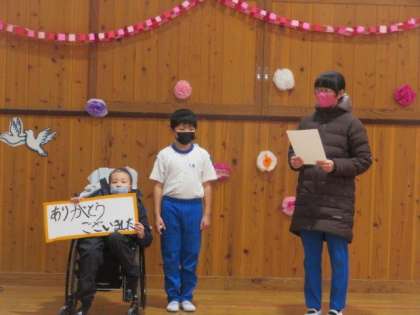 日頃より、学校の教育活動にボランティアとして協力してくださっている地域の方々への感謝の気持ちを伝える会を行いました。登下校の見守りや授業のサポートなどでお世話になった方々をお招きし、図書委員会のメンバーを中心に、全校児童で心を込めて会を運営しました。