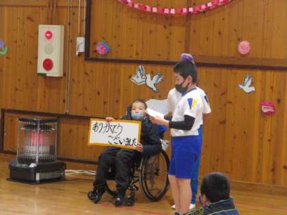 2/24 地域の方に感謝する会2 公開日 2023/02/24 更新日 2023/02/24 学校行事 感謝の気持ちを込めて、お礼の言葉を伝え、お花とミニ色紙を贈呈しました。学校の教育活動の安全と充実にご尽力いただいている方々へ、しっかりと感謝の思いを伝えることができたと思います。地域の皆様、本当にありがとうございました。今後ともよろしくお願いいたします。