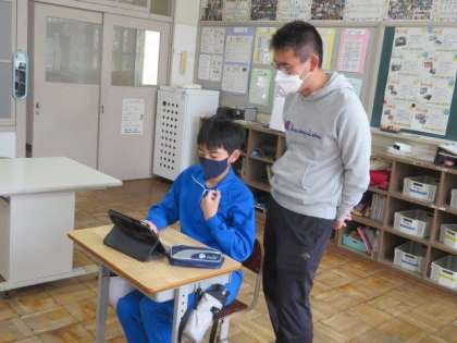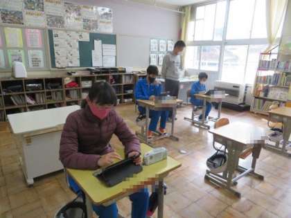 学習用タブレットの「キュビナ」を使って、学習しました。今回は、中学校で学習する内容の予習をしていました。ICT機器を有効に活用しながら、一人一人のペースに合わせて、学習を進めていました。