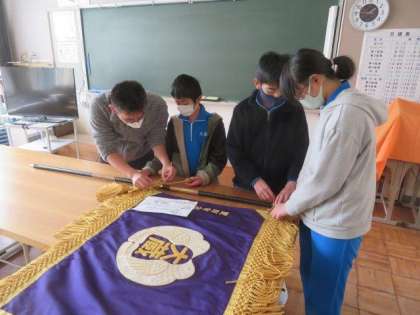 3/9 卒業を祝う会の準備 公開日 2023/03/09 更新日 2023/03/09 特別活動 明日の「卒業を祝う会」に向けた準備の様子です。 6年生は、在校生に引き継ぐ校旗の準備を、1〜5年生は会場の飾りつけをしました。いよいよ卒業が近づいてきたことを強く感じます。明日は、全校のみんなでよい時間を過ごし、6年生の卒業をお祝いしましょう。