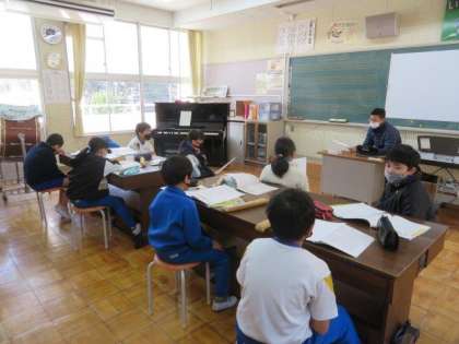 3/15 3・4年生 公開日 2023/03/15 更新日 2023/03/15 各学年から 3・4年生 音楽科の授業の様子です。 今日は歌唱の学習をしていました。コロナ禍のため、全員で歌を歌ったり、楽器を演奏したりする学習が十分にできないこともありましたが、少しずつできることを再開しています。マスクを着けての歌唱でしたが、元気な歌声が響いていました。