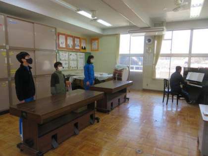 3/16 卒業式練習 公開日 2023/03/16 更新日 2023/03/16 特別活動 卒業式に向けた練習をしました。 6年生は、音楽室で卒業の歌の練習をしました。3名で心と歌声を合わせて一生懸命練習していました。 1〜5年生は、運動場で門送りの練習をしました。20日は、今のところ晴れの予報です。今日の練習のように、気持ちよく6年生を送り出せるとよいですね。卒業式まで本当にあとわずか、全校のみんなでしっかりと準備をして臨みたいと思います。