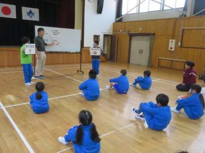 全校対話トレーニングの様子です。「話すこと・聞くこと」の技能を高めるために、昨年度から取り組んでいる対話トレーニングを全校で行いました。今日は「問答ゲーム」(「質問する人」と「答える人」に分かれて、話型を使って対話する活動)を行いました。初めに6年生がお手本を示し、その後、全校で取り組みました。初めて取り組む1年生も上手にできました。今年もトレーニングを継続し、対話力を高めていきたいと思います。