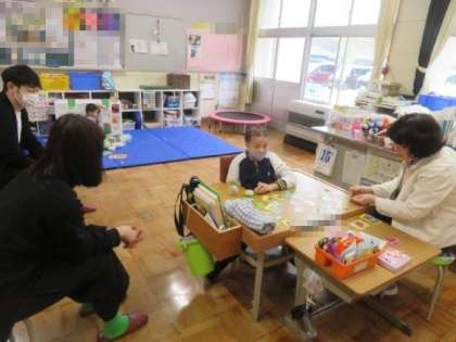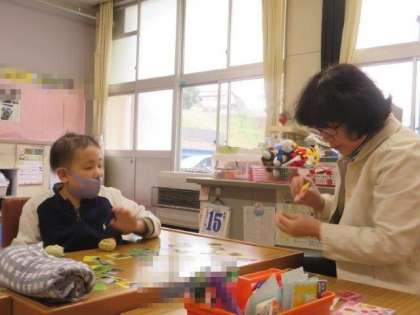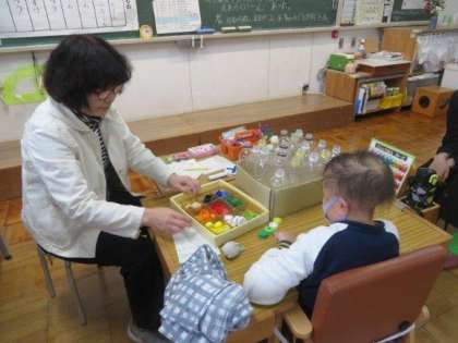 宝物の絵合わせをしたり、ペットボトルキャップの色分けをしたり、いろいろな教具を使って学習ができました。今年度も、対話を通してコミュニケーション力をどんどん高めていってほしいです。
