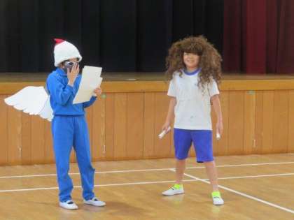 4/20 5・6年生 公開日 2023/04/20 更新日 2023/04/20 各学年から 5・6年生 学級活動の授業の様子です。 来週行う「1年生を迎える会」に向けた準備をしていました。1年生に喜んでもらえるよう、仮装をしたり内容を工夫したりしながら練習をしていました。集会室でリハーサルをしながら、よりよくするためにできることをみんなで考えていました。来週は、全校で素敵な時間を過ごせそうで今から楽しみです。
