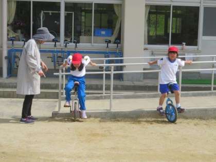4/21 1・2年生 公開日 2023/04/21 更新日 2023/04/21 各学年から 1・2年生 体育科の授業の様子です。 今日も、一輪車の練習をがんばっていました。体育の授業はもちろん、放課にも毎日練習を重ねているので、どんどん上手になっています。先生に手を支えてもらいながら、運動場の端までこげる子も出てきました。この調子でがんばりましょう。