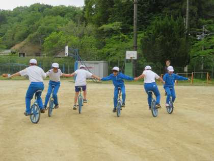 4/25 5・6年生 公開日 2023/04/25 更新日 2023/04/25 各学年から 5・6年生 体育科の授業の様子です。 一輪車の練習をしていました。来月の運動会に向けて、1年生に教えることもがんばりながら、自分たちの練習にも全力で取り組んでいます。今日は、みんなで手をつないだり回転したりする技を練習していました。運動会では、素晴らしい演技を披露してくれることを期待しています。