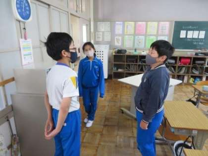 5/2 5・6年生 公開日 2023/05/02 更新日 2023/05/02 各学年から 5・6年生 対話トレーニングの様子です。 「問答ゲーム」に取り組みました。今日は、質問に対する自分の考えを、理由を二つ入れて答える活動を行いました。相手にわかりやすく伝えることを意識しながら対話する姿が見られました。今回も、よい対話ができていたペアを選び、伝え合う活動を行いました。お互いのよさを認め合い、学び合うことで、どんどん対話の技能が高まっていることを感じます。引き続きがんばっていきましょう。