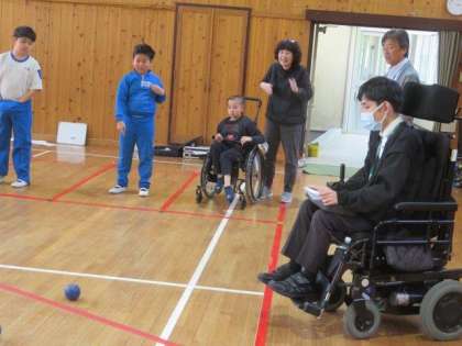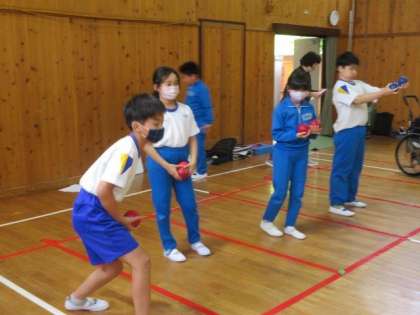 5/8 クラブ活動3 公開日 2023/05/08 更新日 2023/05/08 特色ある学校づくり推進事業 最後は「ボッチャクラブ」です。今年度から開かれた講座です。今日は、2チームに分かれて試合をしながら、ボッチャのルールを学びました。何度もボールを投げているうちに、少しずつコツがわかってきたようで、みんなどんどん上達していました。 クラブ活動は年間10回を予定しています。技術を高めることはもちろん、講師の方や異年齢の仲間との交流を大切にして、楽しい時間を過ごしてほしいです。