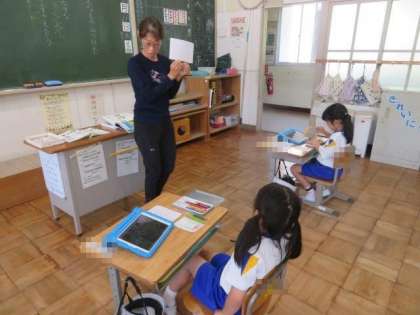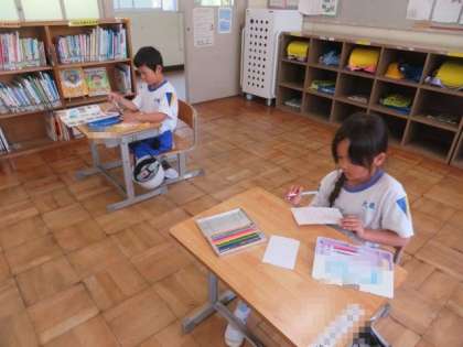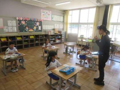 5/11 1年生 公開日 2023/05/11 更新日 2023/05/11 各学年から 1年生 国語科の授業の様子です。 「こんな もの みつけた」の学習です。先日、図画工作科の授業で描いた「春の花」の絵を使って学習しました。絵を描いてある画用紙の裏に、描いたものの名前をひらがなで書きました。「たんぽぽ」の場合は「た」のように、初めの文字を丁寧に書いていました。少しずつ、ひらがなやいろいろな言葉を覚えています。