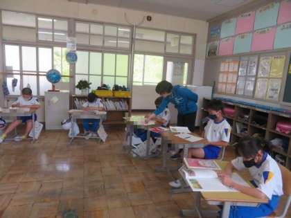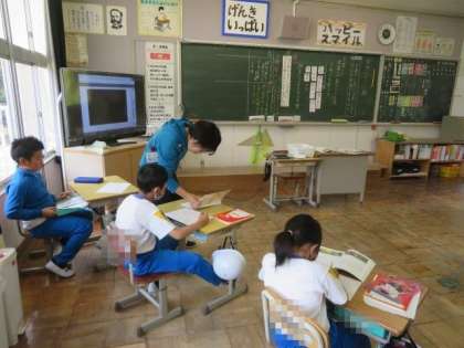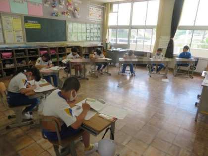 5/12 3・4年生 公開日 2023/05/12 更新日 2023/05/12 各学年から 3・4年生 国語科の授業の様子です。 「自然のかくし絵」の学習です。教科書を読みながら、トノサマバッタの保護色について、プリントにまとめました。文章を丁寧に読みながら、キーワードを抜き出すことができました。内容を正確に読み取る力が高まってきています。