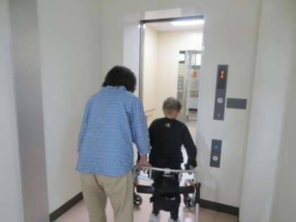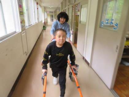 5/31 ひまわり学級 公開日 2023/05/31 更新日 2023/05/31 各学年から ひまわり学級 自立活動の授業の様子です。 今日は、歩行訓練をしていました。教室でルートの確認をしてから、歩行器を使って校内を歩きまわりました。しっかりとした足取りで、元気よく歩く姿が見られました。エレベーターのボタンも自分で押して2階へ移動することもできました。これからもどんどん運動して健康な身体をつくりましょう。