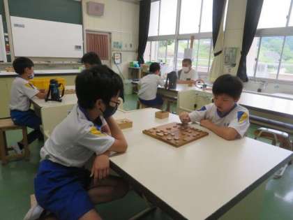 6/5 クラブ活動2 公開日 2023/06/05 更新日 2023/06/05 特色ある学校づくり推進事業 「将棋クラブ」の様子です。 今日も、講師の先生と楽しくお話しながら、それでも真剣に将棋を指していました。駒の動かし方や攻めるときや守るときに意識するとよいことなどを丁寧に教えていただきました。この中から未来の藤井七冠が現れるかもしれませんね。今後の成長が楽しみです。