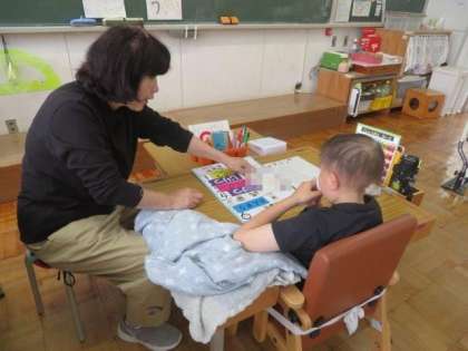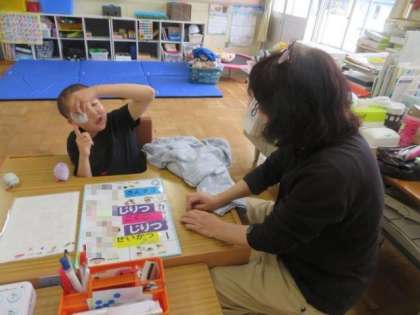 6/8 ひまわり学級 公開日 2023/06/08 更新日 2023/06/08 各学年から ひまわり学級 朝の会の様子です。 予定表を見ながら、一日のスケジュールを確認していました。最近は、さまざまな方法で自分の思いや考えを発信することができるようになっています。今日も、身振り手振りや、教室にあるさまざまな予定表を使いながら、今日のスケジュール確認とそれに対する思いを先生に伝えていました。学習したことや経験したことをしっかりと覚えて、次に生かすことができるようになっています。
