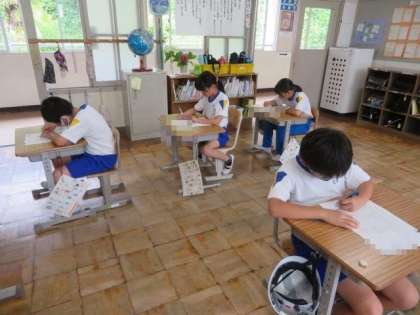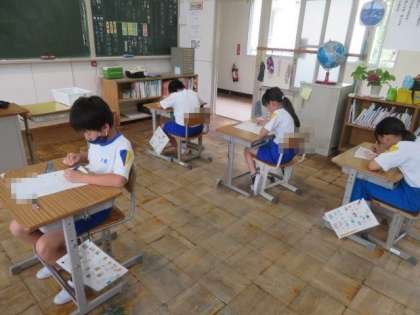 6/21 4年生 公開日 2023/06/21 更新日 2023/06/21 各学年から 4年生 算数科の授業の様子です。 今日は確認テストをしていました。「大きな数」の問題を解いていました。「10こ集まると、0が一つ増えて、読み方が変わる」という仕組みを思い出しながら、「1億を超える数」の問題に取り組んでいました。学習してきたことがしっかりと身に付いている様子で、みんな落ち着いてテストを解いていました。