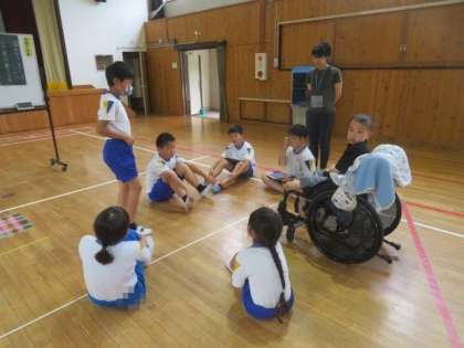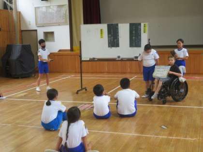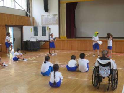 全校児童で集会室に集まって、めあての振り替えりや、来月のスケジュールの確認、誕生日紹介などを行いました。今年度から「3色グループ」での対話的な振り返りを行っていますが、主体的に参加する姿が見られるようになってきました。スケジュール確認や誕生日紹介も、いつも通り楽しくできました。夏休みまであと1か月、今一度気持ちを引き締めて、充実した学校生活を送れるようにしていきましょう。