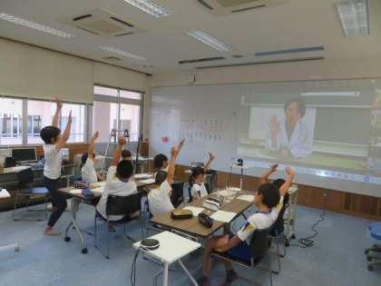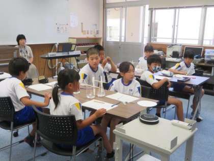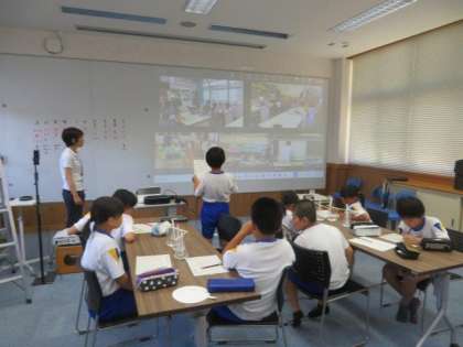 最後は、3・4年生の様子です。理科「みんなで確かめよう理科のフシギ」の学習です。ろ紙を使って、水性ペンの色を分解する実験を行いました。さまざまな色が、どのような色に分解できるのか、予想を立ててから実験を行いました。5校でさまざまな予想が出され、大いに盛り上がりました。足助のつながりを生かした活動を、今後も大切にしていきたいです。