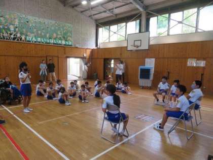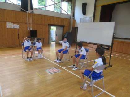 今日のテーマは「戦争をなくすにはどうしたらいいの」です。5・6年生がファシリテーターとなり、自分たちで意見をつなげながら対話を行いました。各学年の代表が前で話を進めていましたが、途中からはフロアの子どもも加わり、まさに「全校対話」となりました。5・6年生の頑張りで、前回よりも、意見のつながりや広がりが多く見られました。各学級での取組の成果が表れてきています。この調子で、対話の技能をどんどん高めていけるとよいと思います。