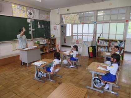 7/11 1年生 公開日 2023/07/11 更新日 2023/07/11 各学年から 1年生 国語科の授業の様子です。 今日は「かぞえうた」の学習です。日本語特有の「ひとつ」「ふたつ」「みっつ」…などの言い表し方を学びました。普段あまり使わない「ここのつ」などは少し言いにくそうでしたが、繰り返し練習することで、少しずつ身に付いてきたようでした。言葉は大切な文化です。一つ一つ正しく覚えて、しっかりと使っていくようにしましょう。