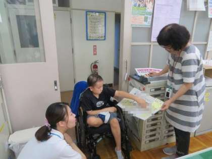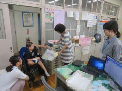 9/5 ひまわり学級 公開日 2023/09/05 更新日 2023/09/05 各学年から ひまわり学級 朝の挨拶の様子です。 今日も、職員室に挨拶に来てくれました。健康状態の報告に続き、恒例のスケジュール確認を行いました。遅刻や早退、欠席などの予定をしっかりと把握できており、楽しみにしていることなどと併せて教えてくれました。語彙がどんどん増えており、自分のことはもちろん、家族のことなどについてもたくさん教えてくれるようになってきました。