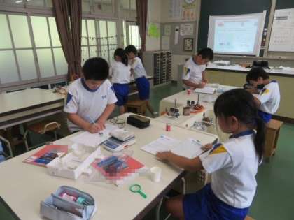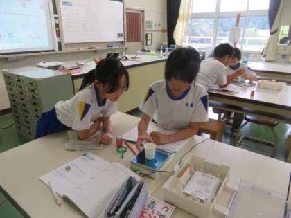 9/13 3・4年生 公開日 2023/09/13 更新日 2023/09/13 各学年から 3・4年生 理科の授業の様子です。 今日は「ものの重さ」の学習です。身の回りのものの重さを、はかりを使って測定しました。予想を立ててから一つずつはかりに載せて測定しましたが、紙コップなど予想よりもかなり軽いものもあって、みんな驚いていました。身の回りのものの重さに興味をもって、いろいろなものの重さを測ることができました。
