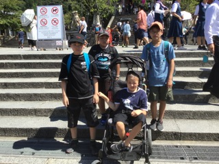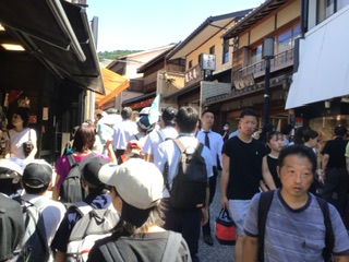 清水寺で見学。清水の舞台の高さに驚きでした。 外国人観光客が増え,大混雑でした。