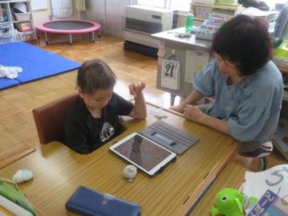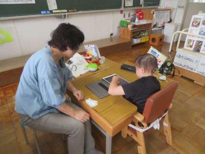 9/21 ひまわり学級 公開日 2023/09/21 更新日 2023/09/21 各学年から ひまわり学級 国語科の授業の様子です。 今日は学習用タブレットを活用して、文字や言葉の学習をしていました。タブレットに表示された文字を指で押さえながら確認をしていました。どんどん語彙が増えて、自分の思いや考えを相手に伝えることが上手になってきました。