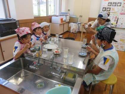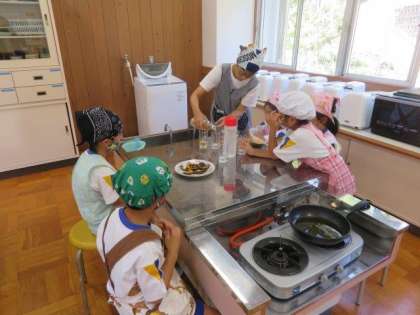 9/25 1・2年生 公開日 2023/09/25 更新日 2023/09/25 各学年から 1・2年生 生活科の授業の様子です。 今日は、みんなで育てたかぼちゃを調理して食べました。先生と一緒に、熱したフライパンの上に、おそるおそるかぼちゃをのせて加熱しました。みんなで育てて、みんなで調理したかぼちゃと梅ジュースの味は格別だったようでした。「おいしい、おいしい」と言いながら、嬉しそうに食べていました。
