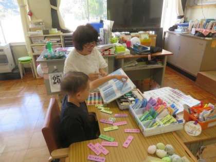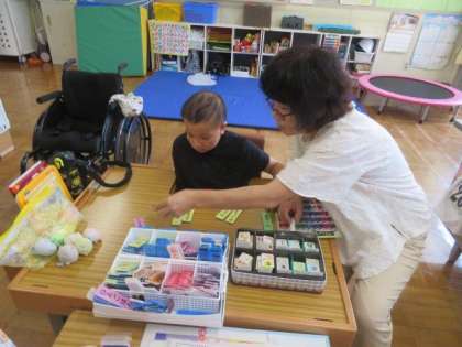 9/25 ひまわり学級 公開日 2023/09/25 更新日 2023/09/25 各学年から ひまわり学級 対話トレーニングの様子です。 今日も「言葉カード」を活用して、休日の出来事を先生に伝えていました。以前から使用している名詞のカードに加え、「〜が」などの助詞や、「〜しました」などの述語のカードも組み合わせることで、たくさんの情報を素早く伝えることができました。コミュニケーションスキルが一段と向上しているのを感じました。