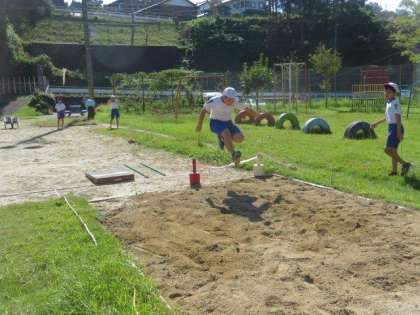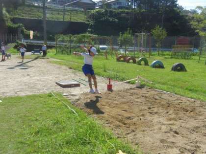 今日は「走り幅跳び」をしました。跳ぶ高さや踏切の位置を意識できるように、補助具を使って練習していました。踏切の位置なども確認をしながら、繰り返し跳んでいました。また、学習用タブレットで跳んでいる姿を撮影して、フォームを確認したりもしました。どんどん記録が伸びていたので、どこまで跳べるようになるか楽しみです。