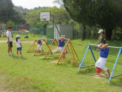 9/29 1・2年生 公開日 2023/09/28 更新日 2023/09/28 特色ある学校づくり推進事業 1・2年生 体育科の授業の様子です。 今日も「鉄棒」の学習です。体力向上補助指導員からも具体的なアドバイスをいただきながら、いろいろな技に挑戦しました。繰り返し鉄棒の練習に取り組むことで、どんどん動きがよくなり、上手になってきました。この調子でがんばっていきましょう。