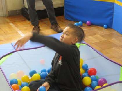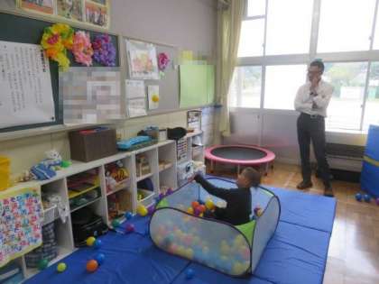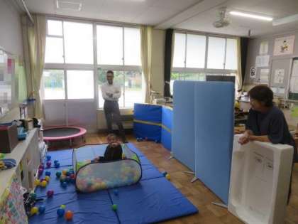 10/4 ひまわり学級 公開日 2023/10/04 更新日 2023/10/04 各学年から ひまわり学級 自立活動の授業の様子です。 今日は「ボール投げ」をしていました。壁に貼られた先生たちの顔写真をめがけて、楽しそうにボールを投げていました。写真に当たると大喜びで、どんどんボールを投げていました。楽しく、しっかりと体を動かすことができました。
